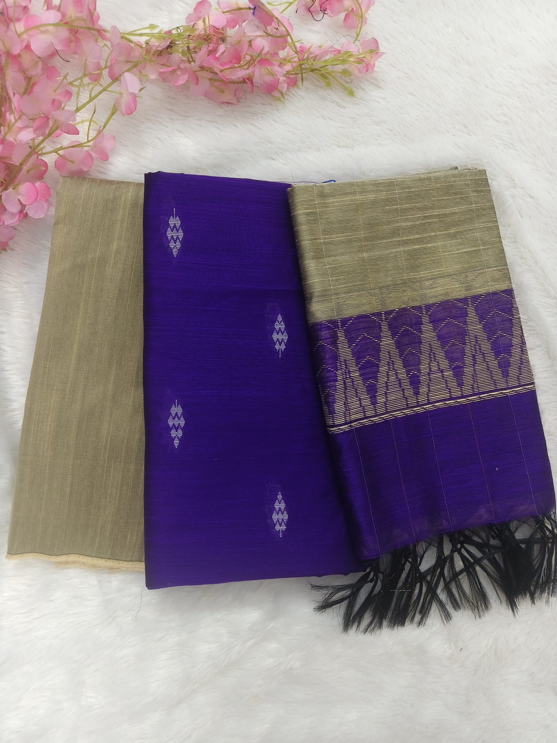 The Premium Rawsilk Grapes Butta Chudidhar Set from Mangalam Collections features elegant grapes butta motifs that bring a refined and graceful traditional appeal. Crafted using premium-quality raw silk fabric, this 3-piece unstitched set is ideal for festive occasions, family functions, and special celebrations.