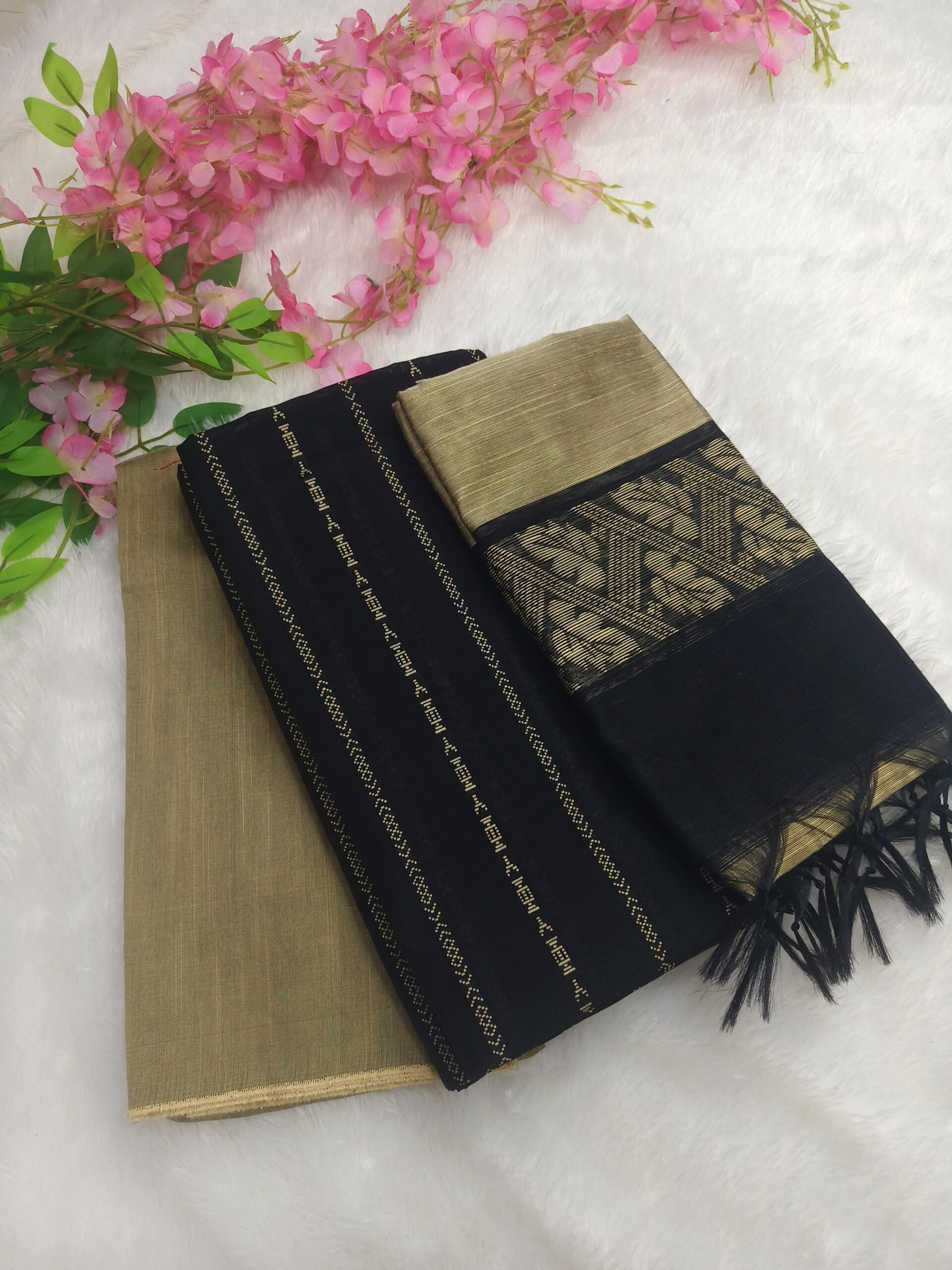 Premium Rawsilk Jacquard Chudidhar Set | Black