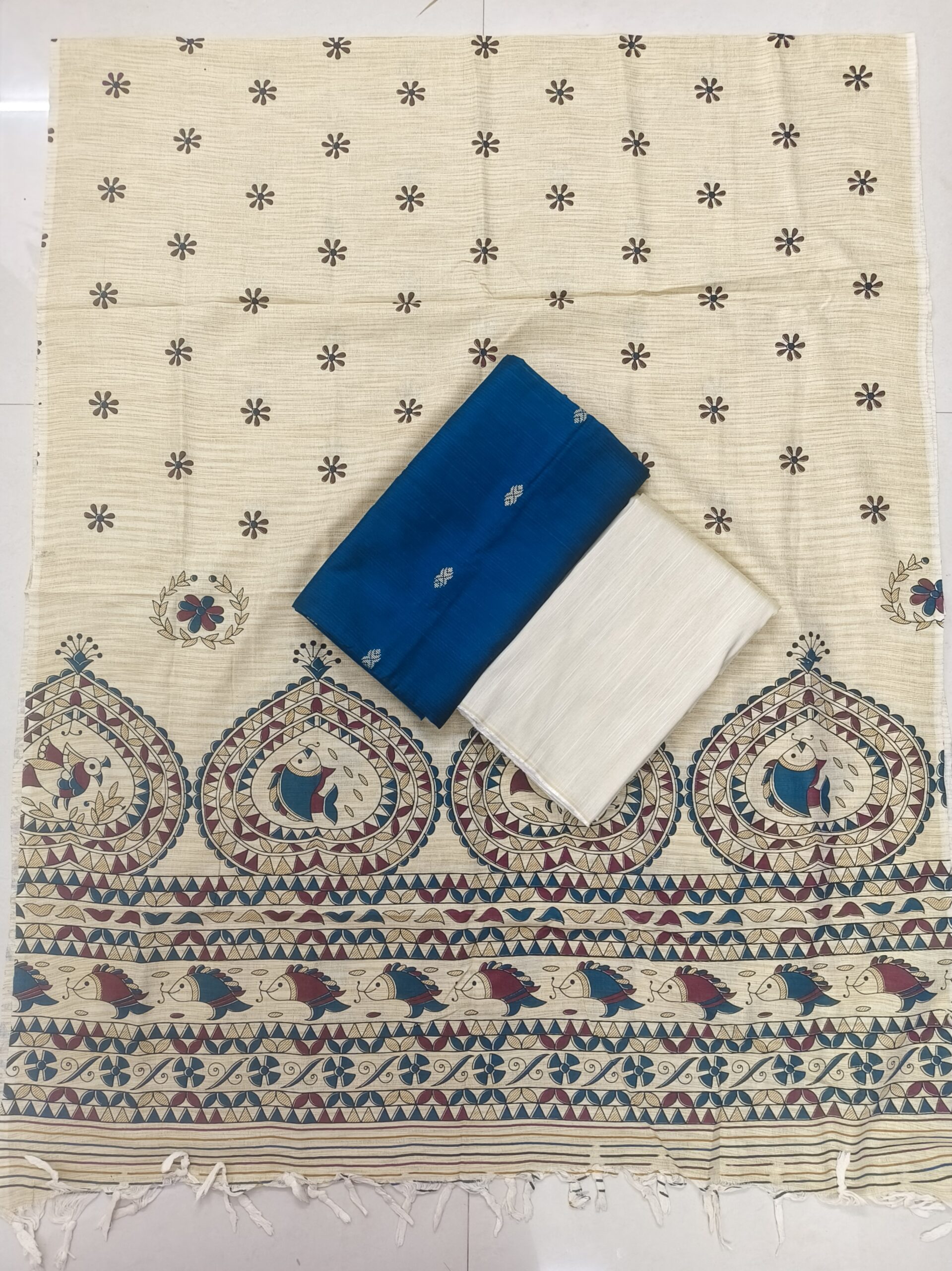 The Premium Rawsilk Madhubhani Dupatta Chudidhar Set from Madhubhani Collections blends traditional artistry with timeless elegance. Crafted with premium-quality raw silk for the top and bottom, this unstitched 3-piece set is paired with a beautifully printed Madhubhani dupatta that adds a vibrant cultural touch.