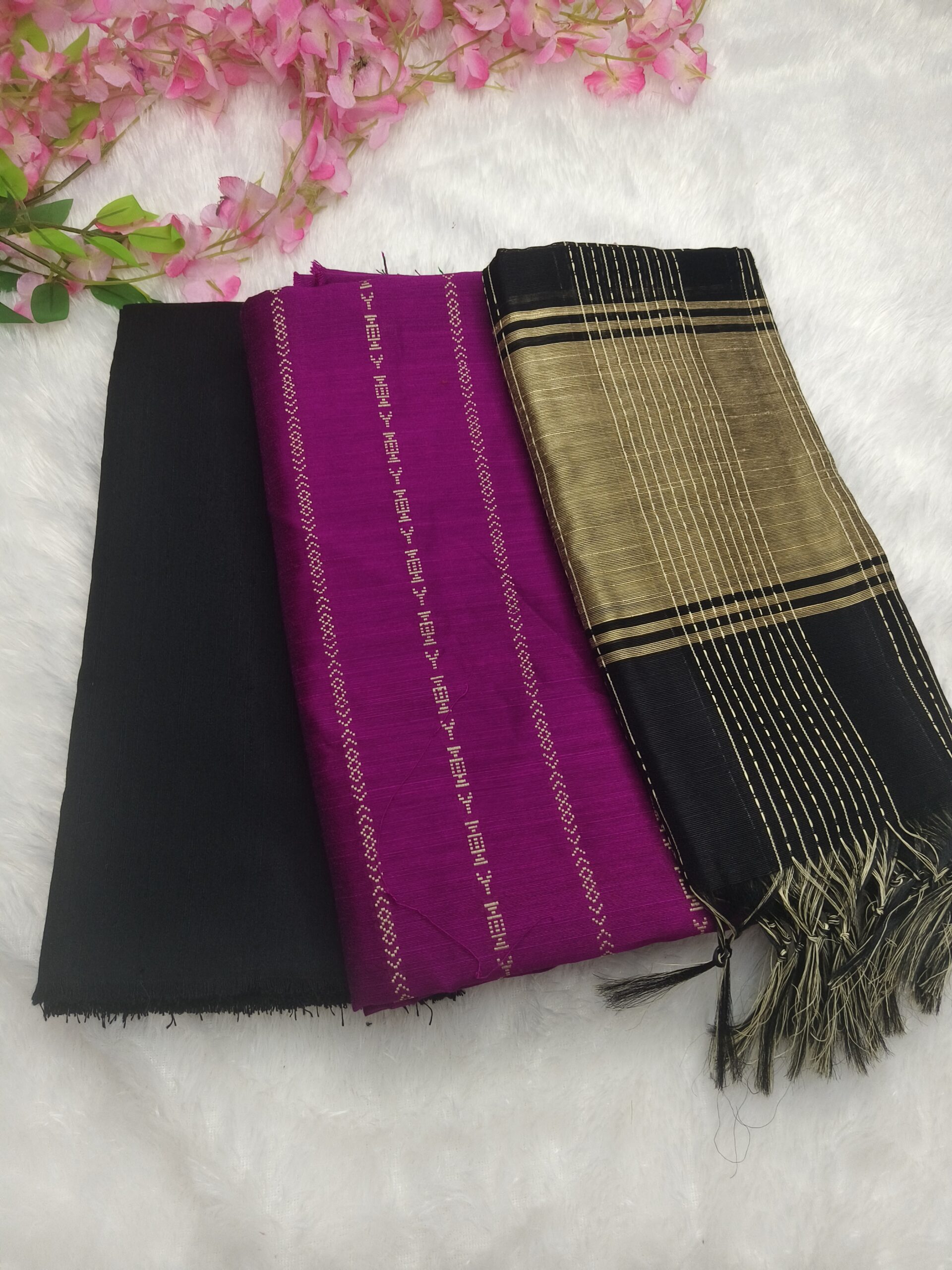 Premium Rawsilk Pongal Special Chudidhar Set | Black & Mejantha