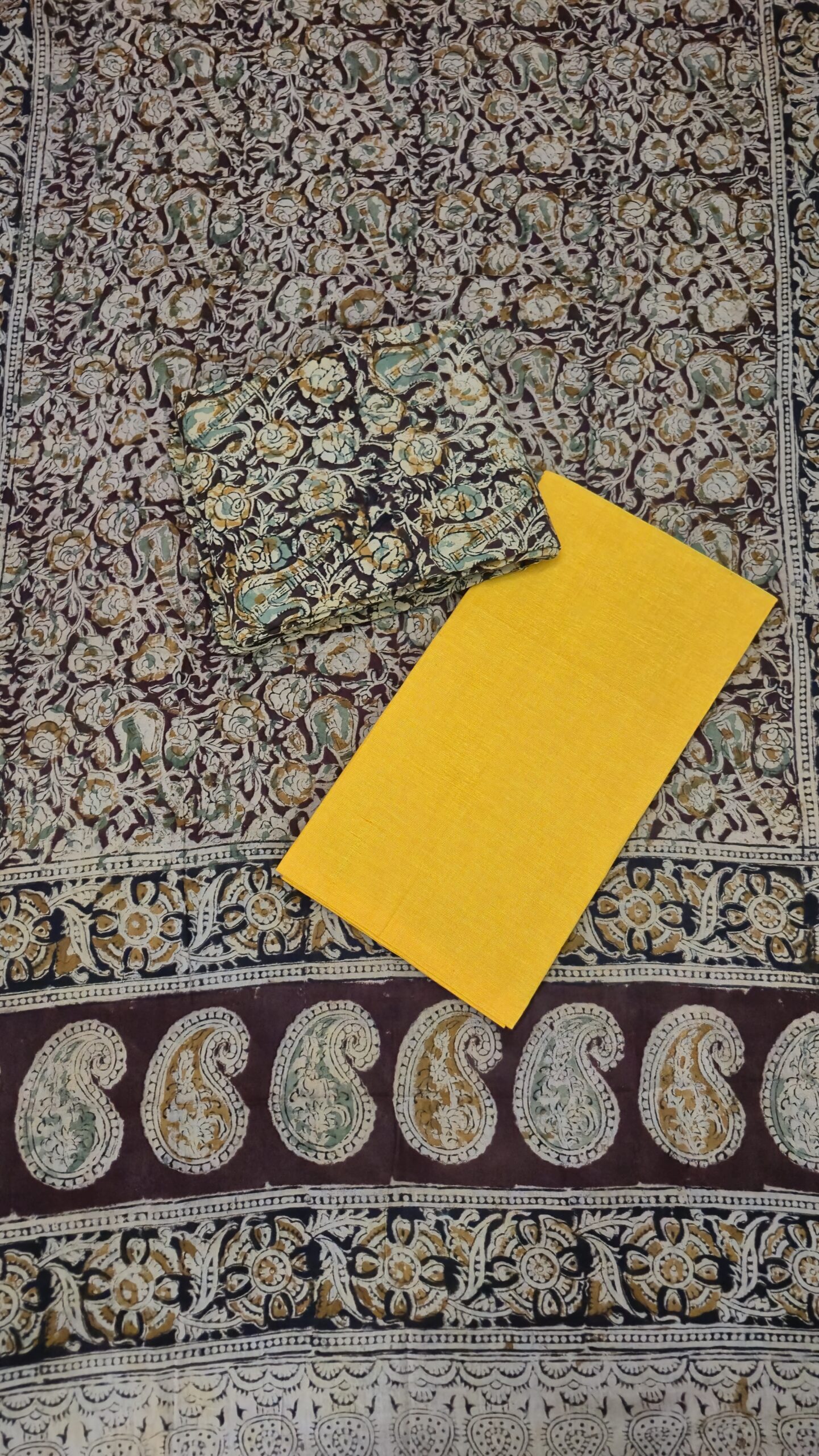Pure Cotton Elegant Kalamkari Chudidhar Set with Classic Paisley Border | Maroon, Mustard Yellow & Beige Tones