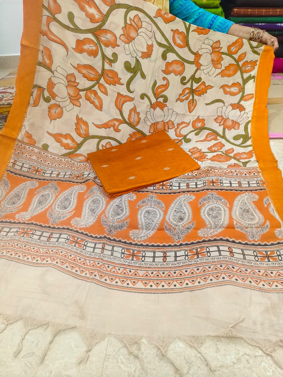 Traditional Royal Kalamkari Nizam Border Dupatta & Top with Premium Finish | Orange